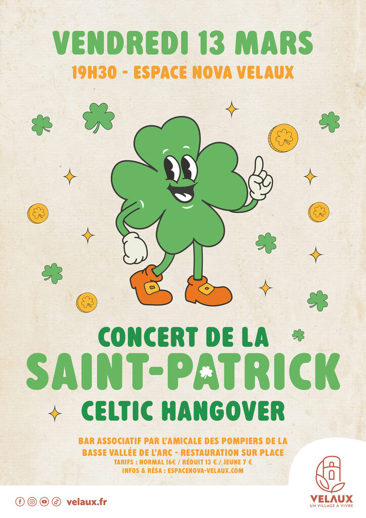 - Et pour finir en beauté, rendez-vous vendredi 13 mars à 19h30 à l’espace NoVa Velaux pour le concert de Celtic Hangover !
