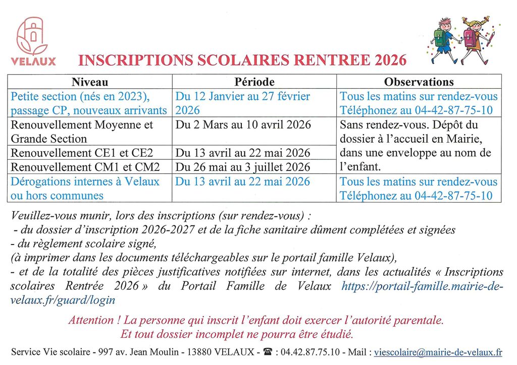Les inscriptions pour la rentrée scolaire 2026 débutent à partir du 12 janvier. Retrouvez ci-dessous toutes les modalités d’inscription.